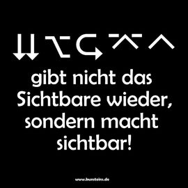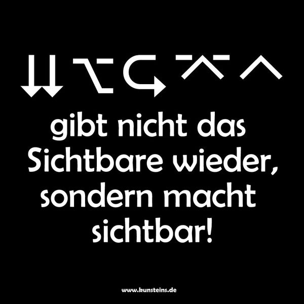 Wenn dabei Kunst, Kommunikation und Marketing zusammenkommen, kann dieser kreative Brutkasten für Codes entstehen. Und das macht letztendlich die Kunst aus. Sie kann Neugierde, Irritation, aber auch spontane Aufmerksamkeit und die Bereitschaft der aktiven Teilnahme am Ort des Geschehens auslösen. Das Atelier KUNSTEINS verknüpft in diesem Kontext Typografie und niedrigschwelliges Marketing mit künstlerischer Interpretation. Der codierte Ort selbst gerät in diesem Kontext zielgerichtet in den Blick des Künstlers. Konzeptuelle Sprüche und Aufkleber sind das Kommunikationsmedium. Die Umsetzung findet mittels Guerilla Marketing, einer unkonventionelle Marketingstrategie statt. Kreative und überraschende Aktionen à la Pop-Art schaffen dabei Situationen und Wirkungen mit begrenzten Ressourcen. Grundlage der Idee sind aktuelle typografische Interpretationen eines Ortes, einer Stadt oder eines öffentlichen Namens. Kurze Buchstabenfolgen bilden aktuell den Kern der typografischen Verwerfung. Man kann schließlich auf die Suche der gängigen öffentlichen Schriften eines Wordprogrammes gehen, um des Rätsels Kern zu ergründen! Die Erkenntnis entmystifiziert allerdings den künstlerischen Prozess und macht ihn letztendlich nur zur alltäglichen Werbebotschaft. Aber darüber entscheidet der Eigner selbst. Also Sie.